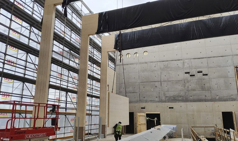 Puupilarien ja CLT-elementtien asennus Fingridin sähköasemalle.